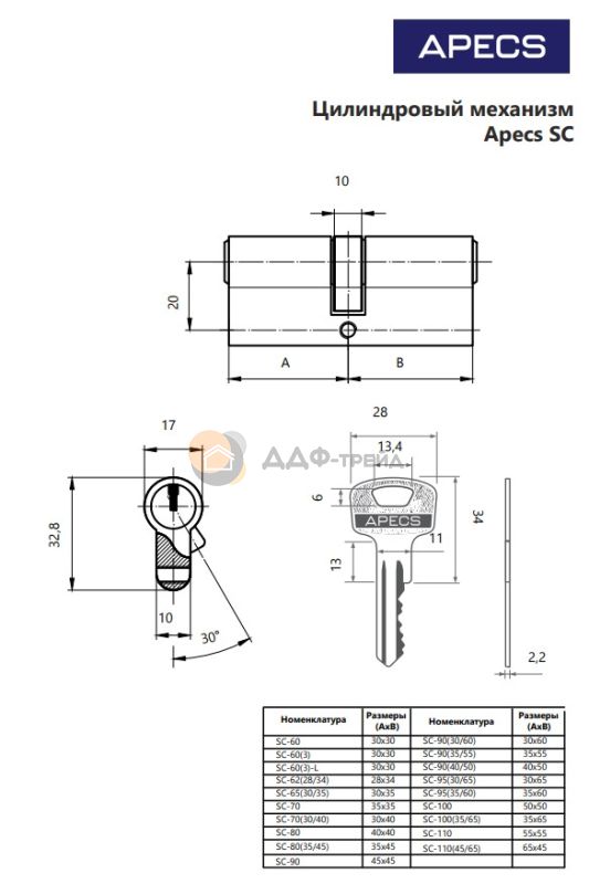 Цилиндровые механизмы Apecs - оптимальное предложение по качеству в сегменте латунных цилиндров, предназначенных для входных дверей. Прошли испытания и сертификацию в России 2 класса согласно ГОСТ 5089-2011. В цилиндровых механизмах Apecs реализована защита от бампинга, манипуляционных методов вскрытия, высверливания. Рекомендации по использованию с другими товарами для установки на входную дверь (приобретаются отдельно): - накладная броненакладка Apecs Protector Basic; - врезная броненакладка Apecs Protector Pro 50. ВАЖНО: при установке цилиндров не использовать электроинструмент.