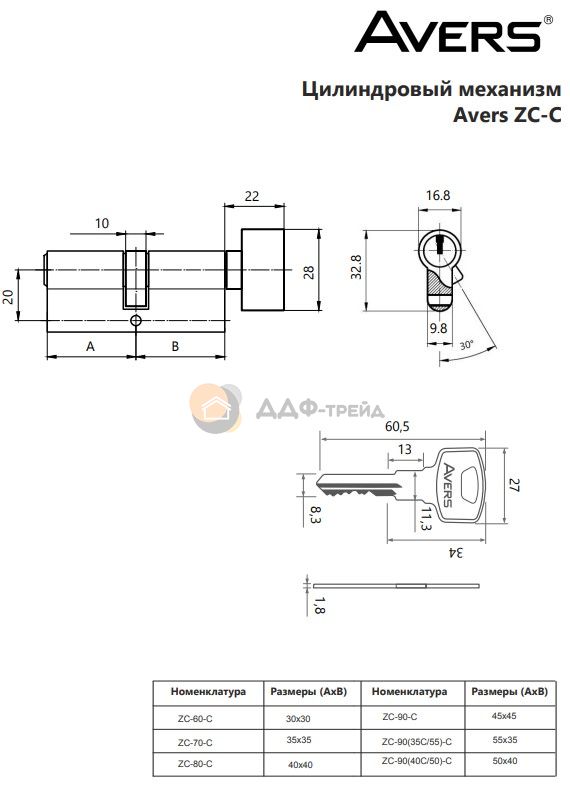 Цилиндровые механизмы Avers ZC - бюджетные цилиндры из ЦАМа, предназначенные для комплектации замков под евроцилиндр 1 класса. Рекомендуюся для установки в межкомнатные и входные двери.
