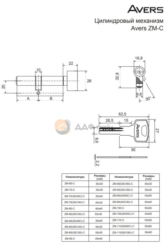 Цилиндровые механизмы Avers ZM - бюджетные цилиндры из ЦАМа, предназначенные для комплектации замков под евроцилиндр 1 класса. Рекомендуются для установки в межкомнатные и входные двери. Во входные двери устанавливаются с другими товарами (приобретаются отдельно): - защитная накладка Avers DP-80-C; - защитная накладка Avers Pro 50/11 совместно с установочными пластинами Avers 50/7-DP-11 или Avers 50/8-DP-15; - защитная накладка Avers Pro 50/27. ВАЖНО: при установке цилиндров не использовать электроинструмент.