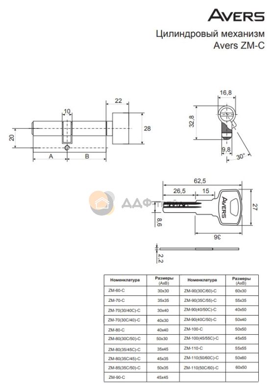Цилиндровые механизмы Avers ZM - бюджетные цилиндры из ЦАМа, предназначенные для комплектации замков под евроцилиндр 1 класса. Рекомендуются для установки в межкомнатные и входные двери. Во входные двери устанавливаются с другими товарами (приобретаются отдельно): - защитная накладка Avers DP-80-C; - защитная накладка Avers Pro 50/11 совместно с установочными пластинами Avers 50/7-DP-11 или Avers 50/8-DP-15; - защитная накладка Avers Pro 50/27. ВАЖНО: при установке цилиндров не использовать электроинструмент.