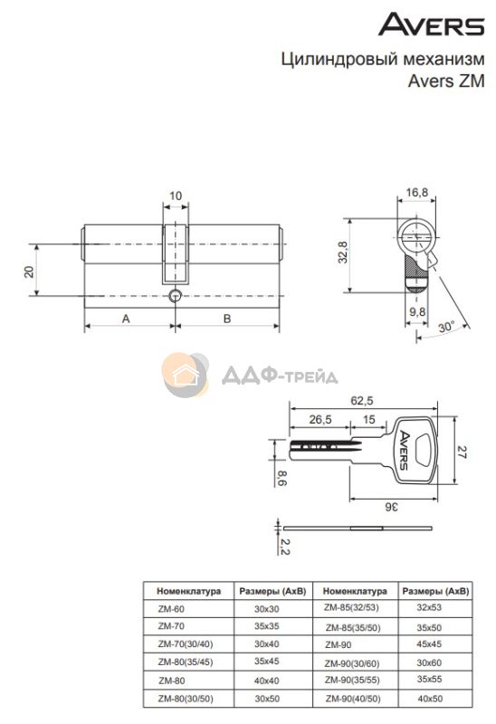 Цилиндровые механизмы Avers ZM - бюджетные цилиндры из ЦАМа, предназначенные для комплектации замков под евроцилиндр 1 класса. Рекомендуются для установки в межкомнатные и входные двери. Во входные двери устанавливаются с другими товарами (приобретаются отдельно): - защитная накладка Avers DP-80-C; - защитная накладка Avers Pro 50/11 совместно с установочными пластинами Avers 50/7-DP-11 или Avers 50/8-DP-15; - защитная накладка Avers Pro 50/27. ВАЖНО: при установке цилиндров не использовать электроинструмент.
