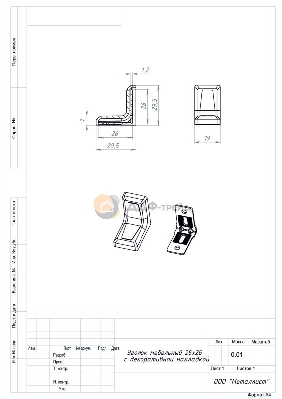 Уголок мебельный 26х26 с декоративной накладкой – основное назначение – крепление  угловых соединений корпусной мебели.