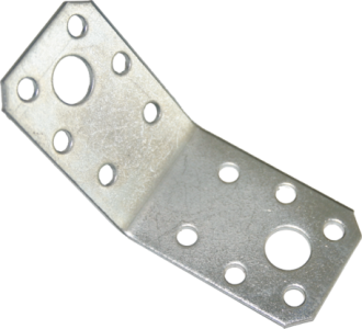 Крепежный уголок считается наиболее простым и дешевым видом перфорированного крепежа. Самое широкое применение это изделие получило для изготовления конструкций из дерева или ДСП любой сложности. Данный вид крепежа пригодится при сборке мебели, возведении стропильных систем, элементов деревянных домов и декоративных деревянных конструкций. Крепежный уголок позволяет сформировать угол равный 90 градусовусов между двумя элементами конструкции. Крепежный уголок может быть усиленным. В отличие от обычного крепежного уголка, уголок усиленный обладает ребром жесткости, что обеспечивает не только повышенный уровень надежности соединений, но и более продолжительный срок эксплуатации. При установке уголка не нужно задействовать специальное оборудование или применять врезку, а это позволяет сократить затраты на монтаж и облегчить его использование. Цинковое покрытие защищает уголок от коррозии и придает эстетичный вид.