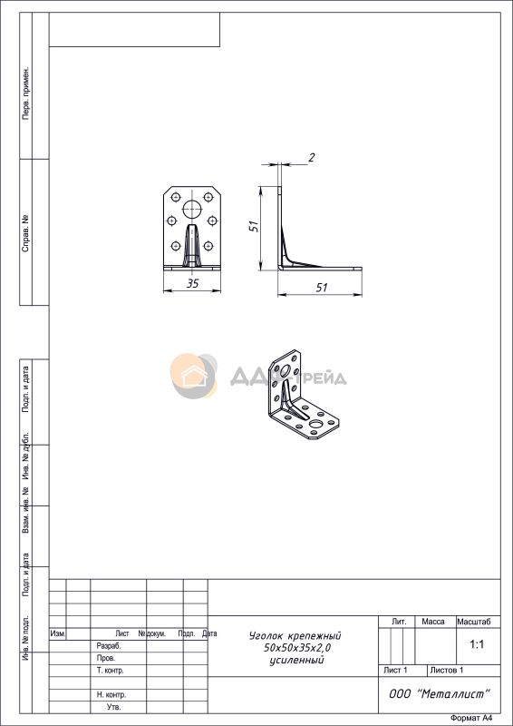 уголок крепёжный 50*50*35 усил.ГОЦ (100) РФ