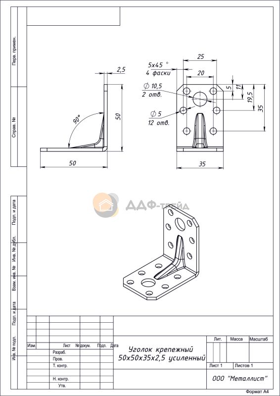 уголок крепёжный 50*50*35*2.5 усил.цинк (100) пленка