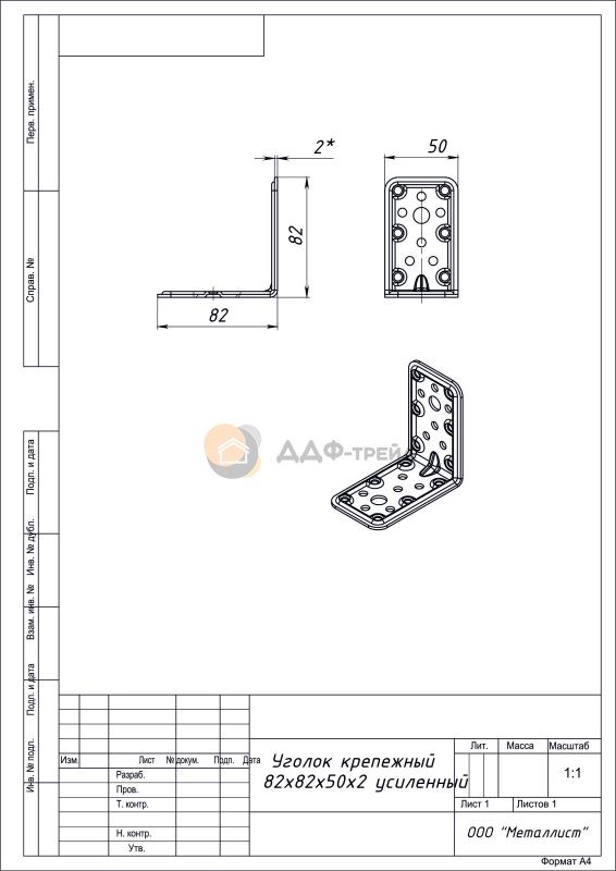 уголок крепёжный 82*82*50*2.0 усил.цинк (30)