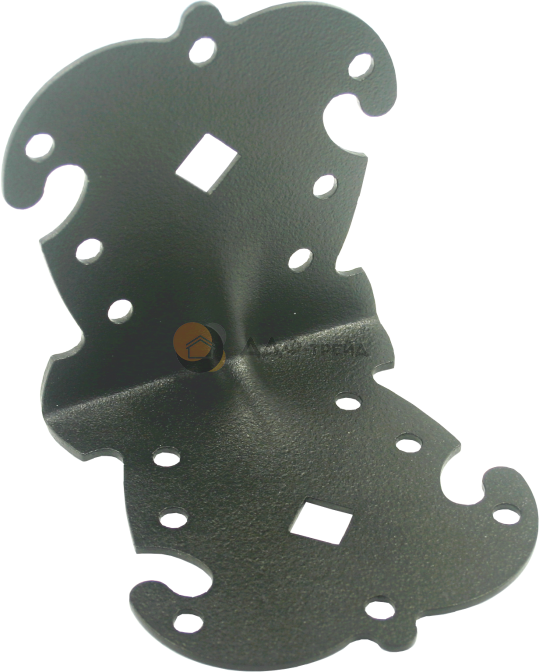 Уголок крепежный усиленный декоративный - это перфорированный крепеж, применяемый для скрепления деревянных конструкций под углом в 90 градусов. Имеет на сгибе ребро, с помощью чего жесткость крепления заметно повышается.