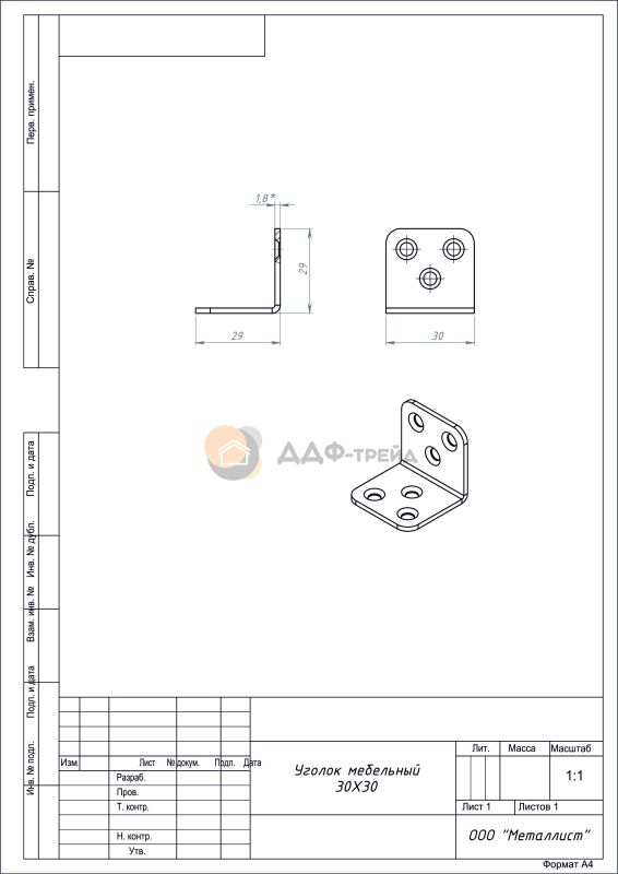 Уголок мебельный 30*30 цинк (компл. 10 шт)