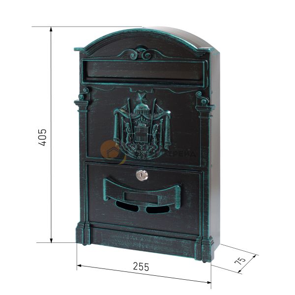 Ящик почтовый индивидуальный. Материал - сталь, алюминий. Цвет - зеленая патина. Размеры - 405*255*75мм. Замок с 2 ключами.