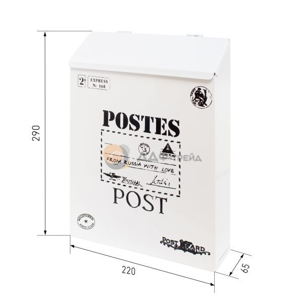 Ящик почтовый индивидуальный. Материал - сталь. Цвет - белый. Размеры - 220*290*65мм. Замок с 2 ключами.