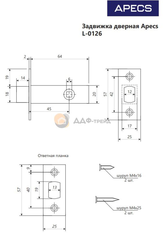Тип крепежа - Саморезы ST4*16 - 2 шт, ST4*25 - 2 шт.