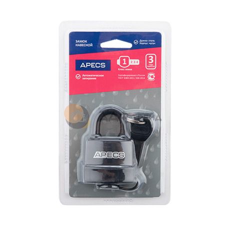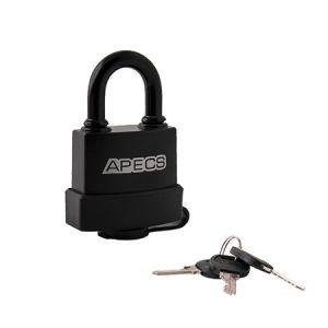 Всепогодные навесные замки Apecs серии 50 - высококачественные навесные замки из чугуна в пластиковом чехле, превосходящие по качеству большинство аналогов на рынке. Пластиковый чехол выполнен из морозоустойчивого материала, не подверженного растрескиванию при температуре до (-40) градусов. Заглушка на цилиндр из мягкой резины превосходит аналоги с пластиковой заглушкой по сроку службы. В замках используется полноразмерный латунный цилиндровый механизм и пружины из нержавеющей стали. Фиксация дужки с двух сторон обеспечивает надежное запирание замка. В замках реализована функция автоматического запирания: запирание замка осуществляется нажатием на дужку без использования ключа.