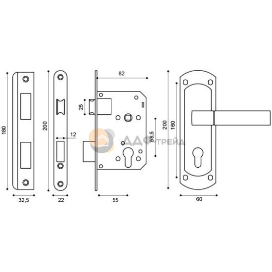 Корпус врезного замка с защелкой и фалевыми ручками на планке KIT P25 5558 ORION предназначен для установки на двери общественных и жилых помещений. Может монтироваться на левых и правых дверях, открывающихся наружу и во внутрь. Межосевое расстояние 58,5 мм. Бэксет 50 мм. В фалевые ручки на планке добавлены пружины и фиксаторы, что исключает "провисание" и обеспечивает четкую фиксацию их положения. Ручки изготовлены из алюминиевого сплава, а накладки из стали. Цвет: бронза. Цилиндр в комплект не входит. Комплектация: корпус замка, ручки на планке, квадрат под ручки, крепеж, паспорт изделия, гарантийная карта.