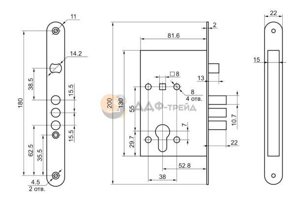 Удаление ключевого отверстия (Backset) мм - 52.8