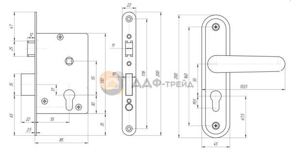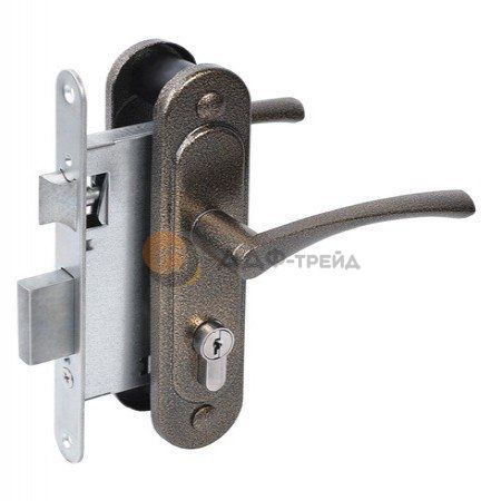 Замок врезной с ручками. Предназначен для установки в деревянные двери толщиной до 45мм, правого и левого открывания. Ригель прямоугольного сечения, вылет 22мм. Универсальная защелка. Стальной корпус, покрыт гальваническим покрытием. Межосевое расстояние 55 мм. Удаление ключевого отверстия 55мм. Материал ручек алюминиевый сплав. Ручки оснащены пружинами. Короткий ход ручек. Комплектация: замок, цилиндровый механизм 70мм, 4 ключа, ручки, ответная планка, винтовые стяжки