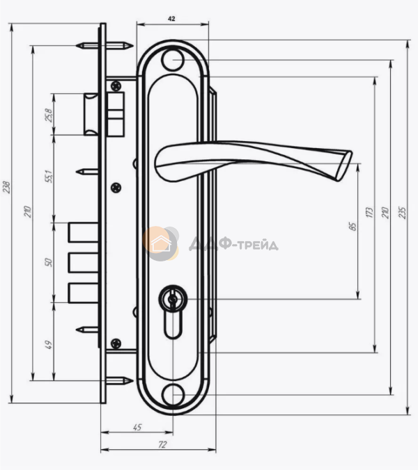 • Тип замка: Врезной — обеспечивает надежное запирание и удобство использования.