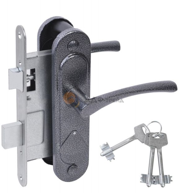 - Материалы: корпус - сталь, засов и защелка - сталь, ручки - сплав алюминиевый, накладки - сталь.