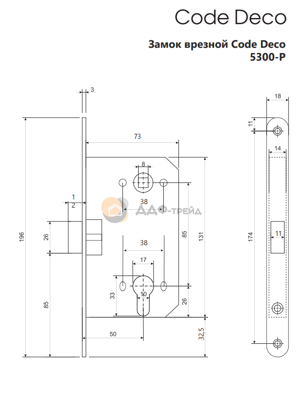 Основные характеристики замка врезного Code Deco 5300-P-BLM: