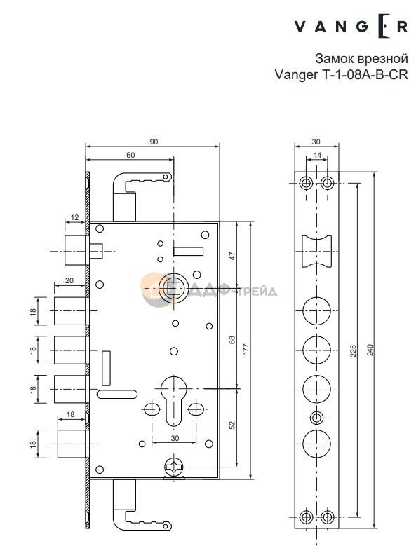 Замок врезной Vanger T-1-08A-B-CR - замки врезные для входных китайских металлических дверей под ручку и евроцилиндр (цилиндровый механизм в комплект не входит), с дополнительной задвижкой.