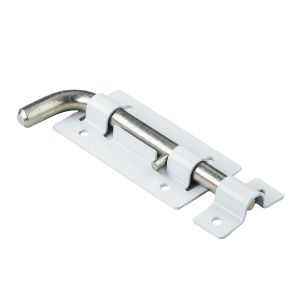Засов накладной для деревянных и металлических дверей. Материал - сталь, полимерное покрытие. Габариты корпуса - 115х63 мм, 4 крепежных отверстия. Г-образный цилиндрический ригель диаметром 13 мм с вылетом 35 мм. В комплекте ответная планка.