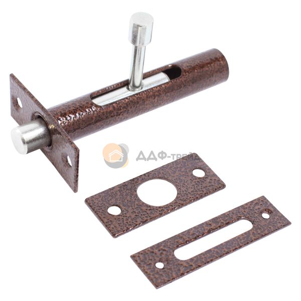 Засов врезной для деревянных и металлических дверей. Материал - сталь, полимерное покрытие. Габариты корпуса - диаметр 18 мм, длина 95 мм, 4 крепежных отверстия. Прямоугольная торцевая планка размерами 25х60 мм. Цилиндрический ригель диаметром 13 мм с вылетом 35 мм. В комплекте ответная планка.
